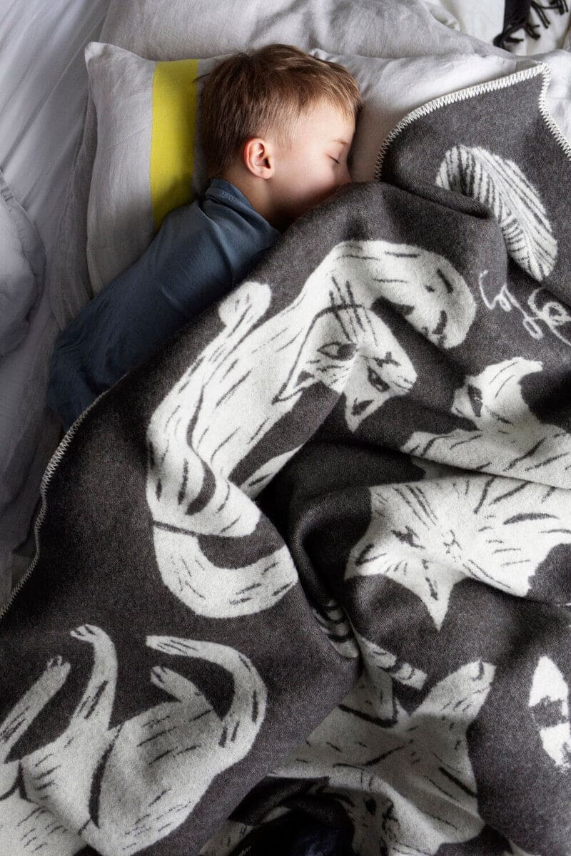 LAPUAN - KISSANPAIVAT CAT DESIGN WOOL BLANKET. BEIGE