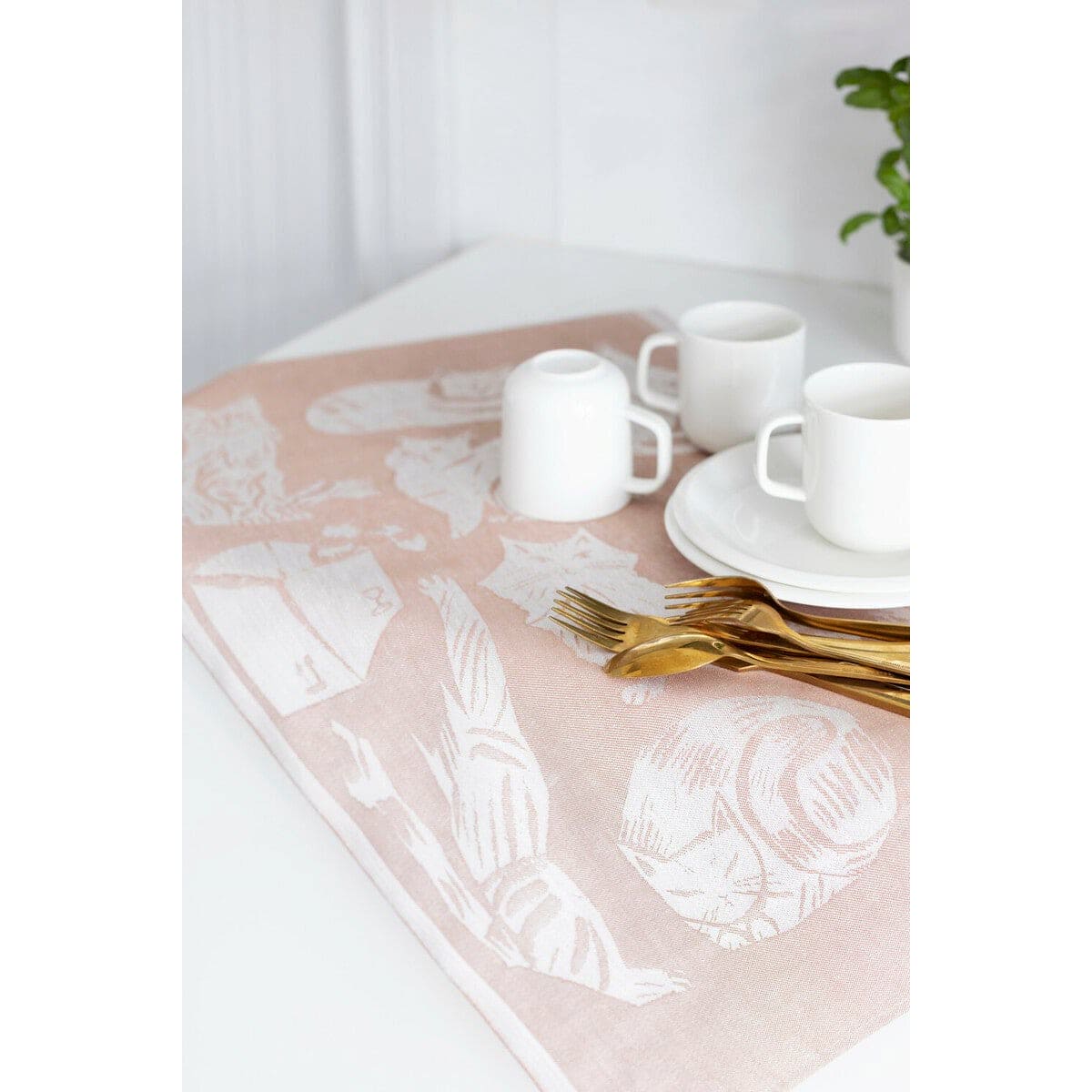 LAPUAN - KISSANPAIVAT CAT - HAND TOWEL. WHITE+CINNAMON