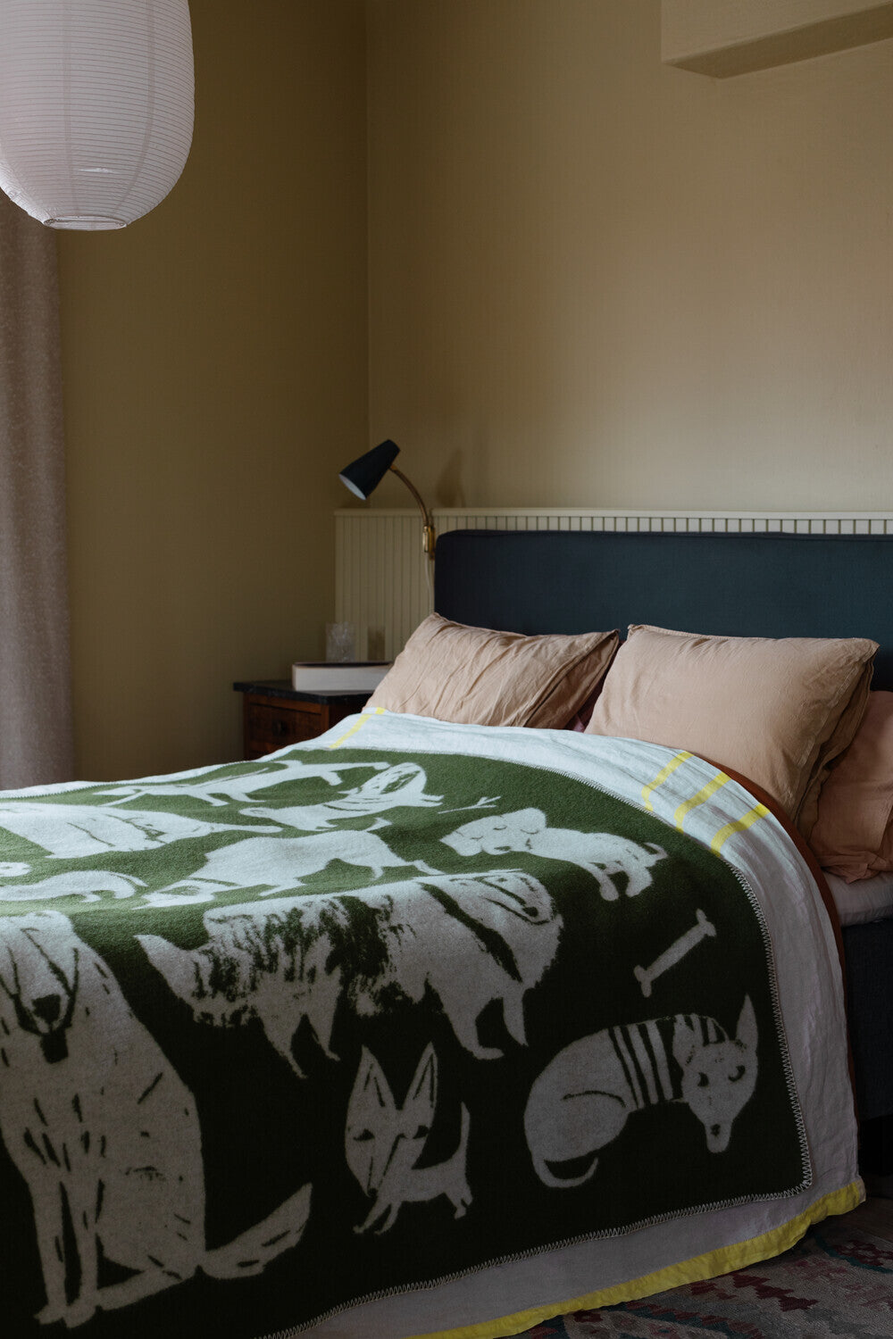 LAPUAN - KOIRAPUISTO DOG GRAPHIC WOOL BLANKET. OLIVE