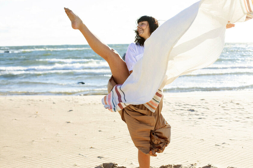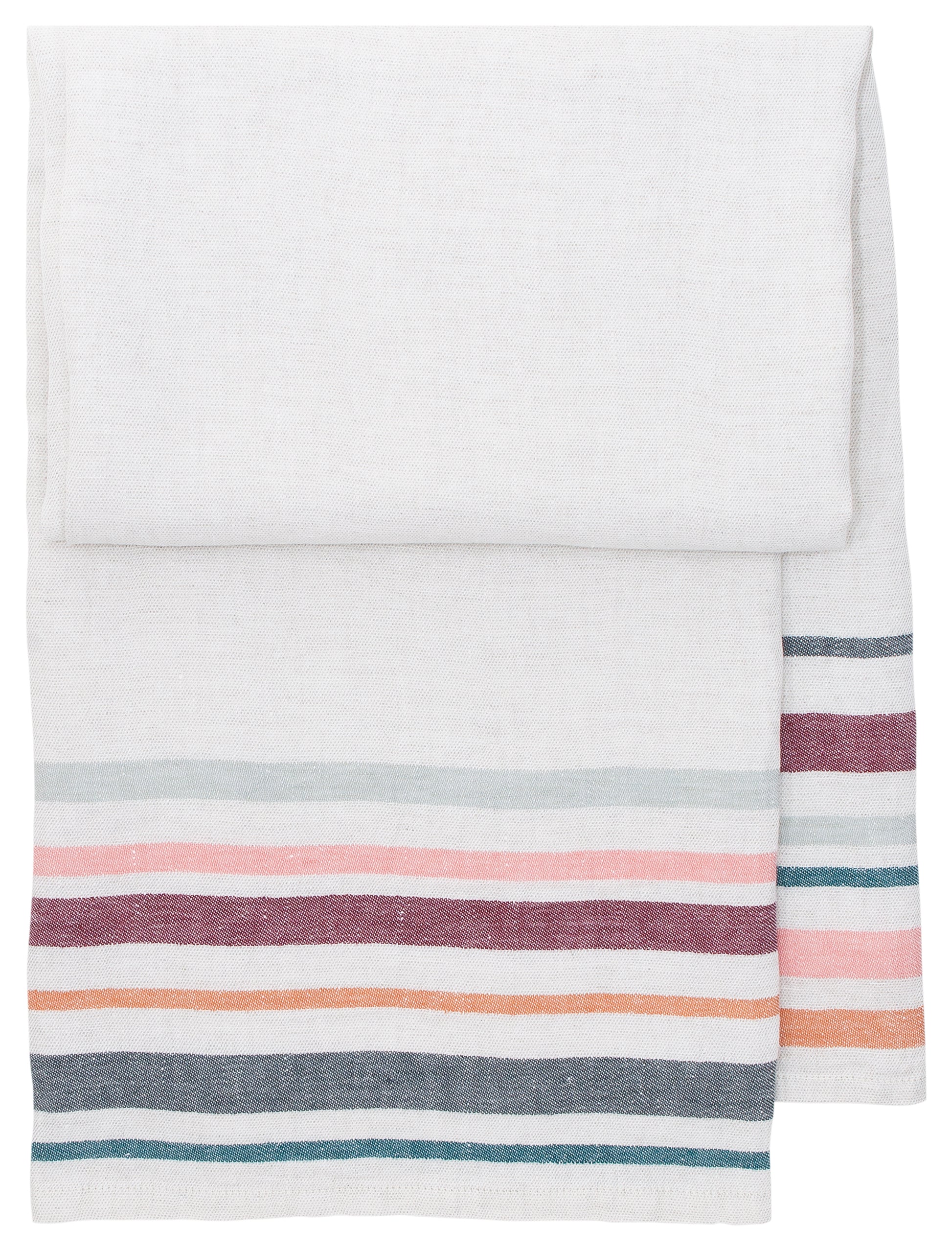 Lapuan Kankurit has collaborated with the Finnish design collective Mifuko for several years now. Lapuan Kankurit and Mifuko share similar values of ethical production, sustainability as well as traceability. Founders of Mifuko Mari Martikainen and Minna Impiö are combining Scandinavian and African elements together. For them design work means fun and ethically sustainable collaboration between countries, cultures and companies. Founders of Mifuko, Mari Martikainen ja Minna Impiö are combining scandinavian and African elements. For them design work means fun and ethically sustainable collaboration with different countries, cultures and companies. LEWA pattern glows in Kenyan colours. Lewa towels are perfect for spa and sauna. Towels are fast drying and absorbent, 100% washed linen. This generously sized towel is comfortable to wrap around yourself. The large towel is also big enough to use as a beach blanket. The smaller size towel is a perfect match for kitchen and bathroom.