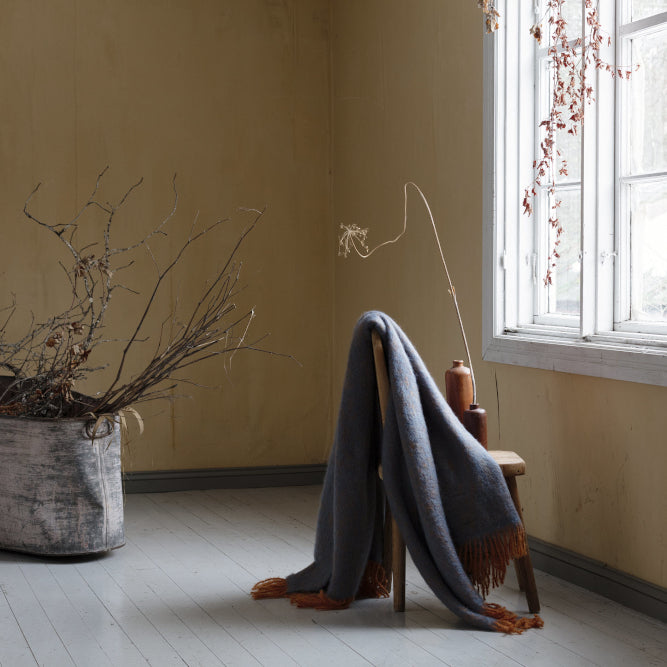 LAPUAN - REVONTULI MOHAIR BLANKET. DENIM BLUE+RUST