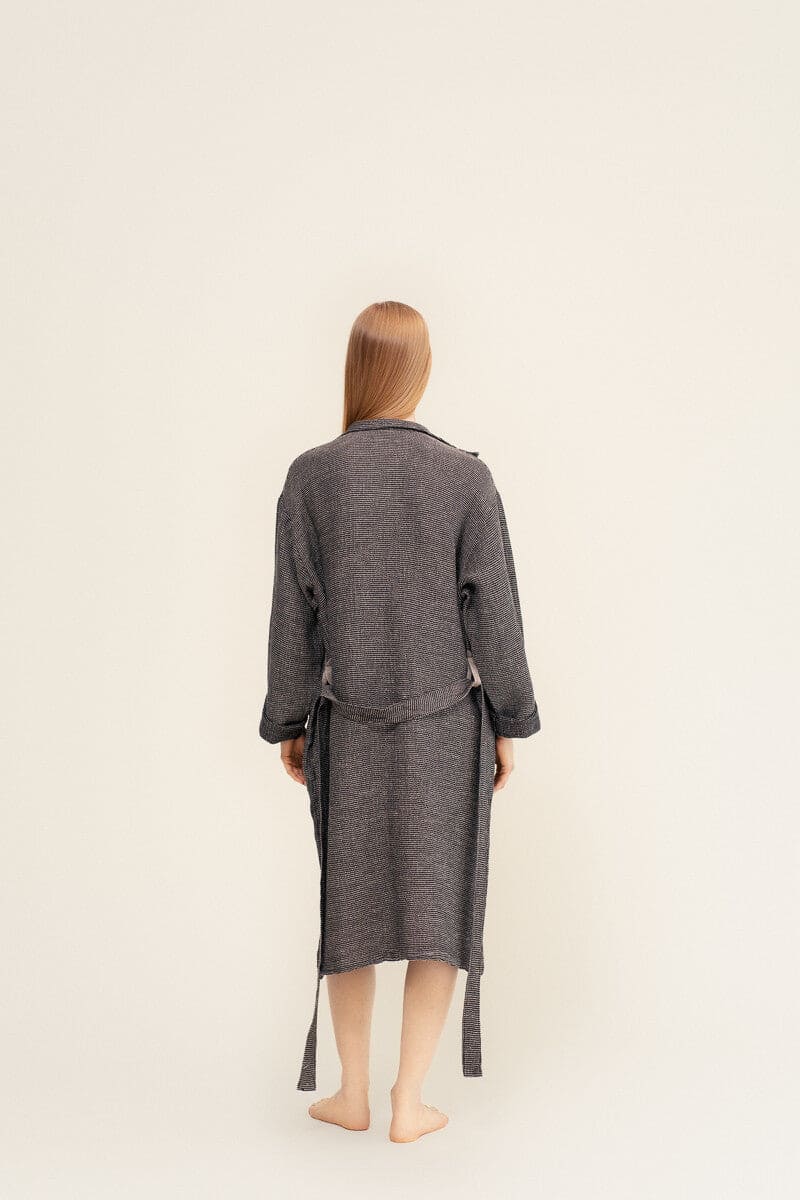 LAPUAN - TERVA WAFFLE BATHROBE. NATURAL+BLACK