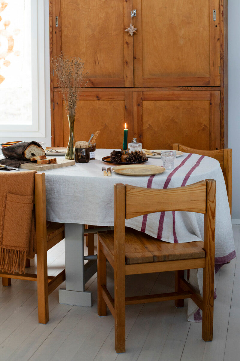 LAPUAN - USVA LINEN TABLECLOTH / BLANKET. NATURAL+BURGUNDY