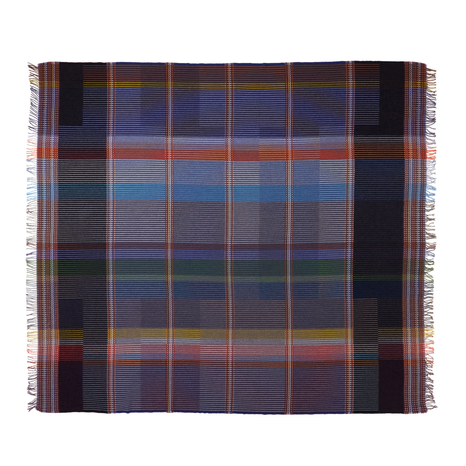 *New* Woven in merino lambswool, our Pinstripe throws combine bold coloured blocks with fine, detailed vertical stripes. This double-sided design also has a contrasting pixelated border and makes a stunning addition to a room.