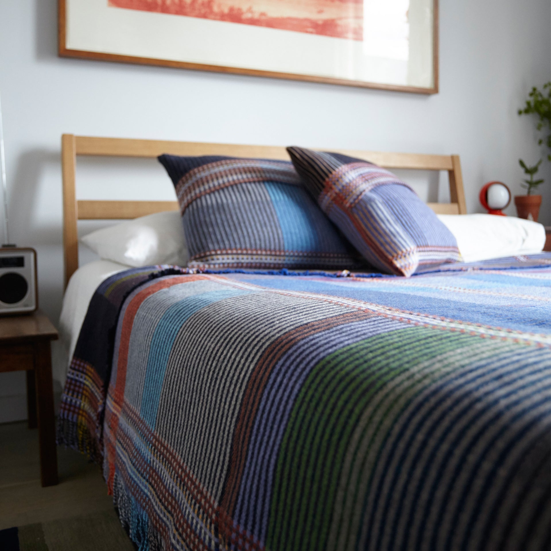 Wallace Sewell is a proudly UK-based studio established by Harriet Wallace-Jones and Emma Sewell that is renowned for their innovative use of colour, structure and yarns to create a distinctive range of quality throws and blankets. Their signature lines feature 3D double-sided waffle blankets, striking pinstriped lambswool throws and lighter weight basket weave designs. Their unique process combines innovation with traditional techniques that all starts on handlooms in their London and Dorset studios. Production takes place in a family-run mill, fusing tradition with state of the art technology, for consistent production quality textiles across various styles. The finished textile is washed and pressed to give a luxurious handle. Harriet and Emma continue to contribute to the wealth of expertise and production excellence of the British Textile Industry.