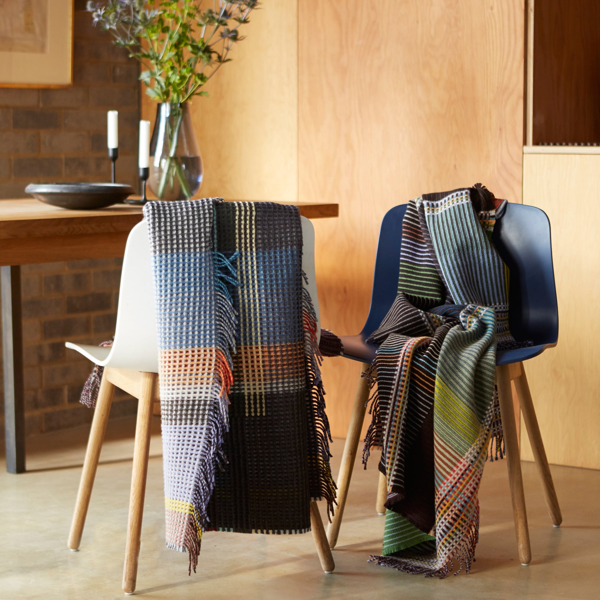 Wallace Sewell is a proudly UK-based studio established by Harriet Wallace-Jones and Emma Sewell that is renowned for their innovative use of colour, structure and yarns to create a distinctive range of quality throws and blankets. Their signature lines feature 3D double-sided waffle blankets, striking pinstriped lambswool throws and lighter weight basket weave designs. Their unique process combines innovation with traditional techniques that all starts on handlooms in their London and Dorset studios. Production takes place in a family-run mill, fusing tradition with state of the art technology, for consistent production quality textiles across various styles. The finished textile is washed and pressed to give a luxurious handle. Harriet and Emma continue to contribute to the wealth of expertise and production excellence of the British Textile Industry.