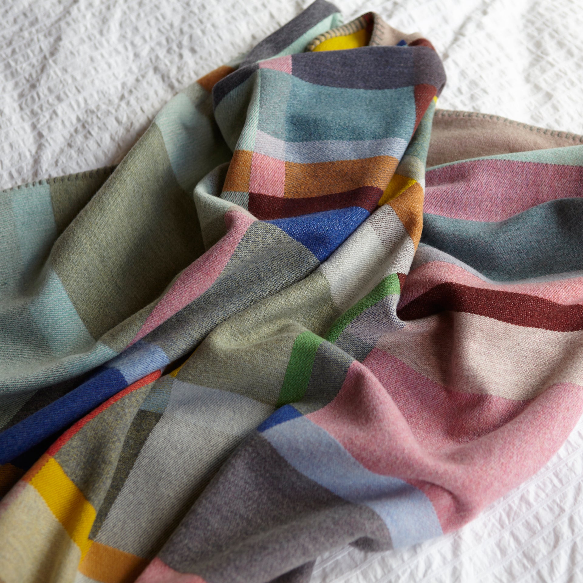 Wallace Sewell is a proudly UK-based studio established by Harriet Wallace-Jones and Emma Sewell that is renowned for their innovative use of colour, structure and yarns to create a distinctive range of quality throws and blankets. Their signature lines feature 3D double-sided waffle blankets, striking pinstriped lambswool throws and lighter weight basket weave designs. Their unique process combines innovation with traditional techniques that all starts on handlooms in their London and Dorset studios. Production takes place in a family-run mill, fusing tradition with state of the art technology, for consistent production quality textiles across various styles. The finished textile is washed and pressed to give a luxurious handle. Harriet and Emma continue to contribute to the wealth of expertise and production excellence of the British Textile Industry.