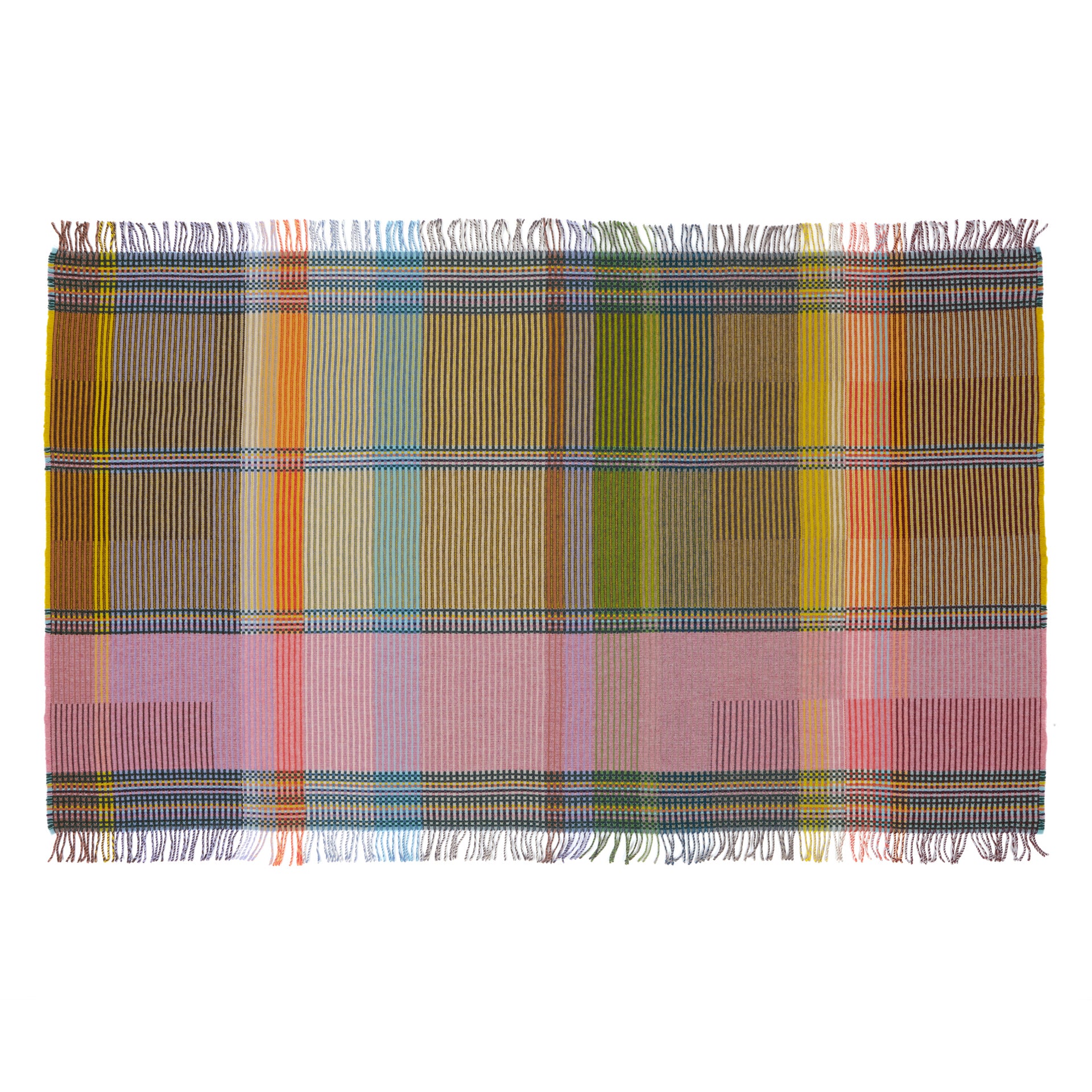 *New* Woven in merino lambswool, our Pinstripe throws combine bold coloured blocks with fine, detailed vertical stripes. This double-sided design also has a contrasting pixelated border and makes a stunning addition to a room.