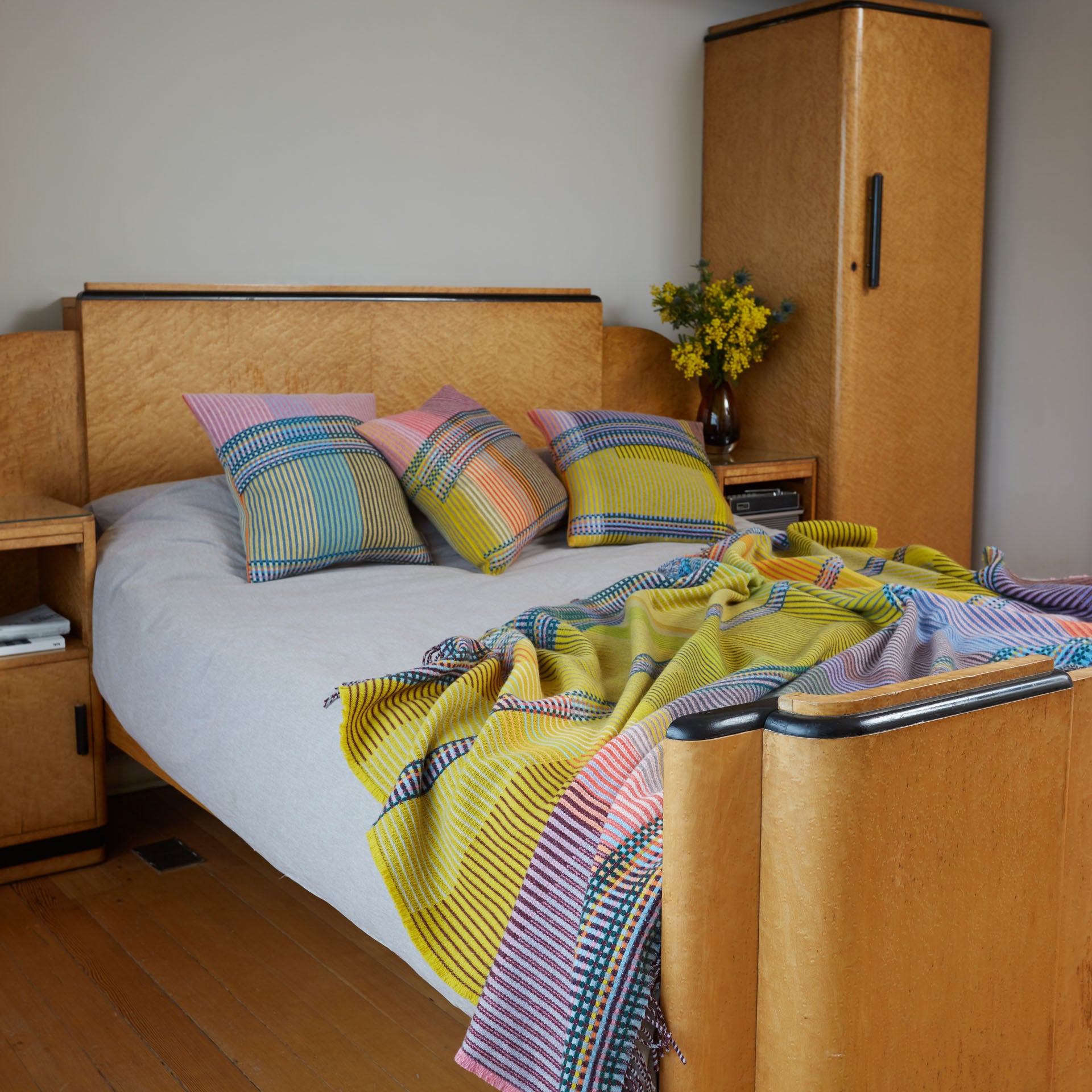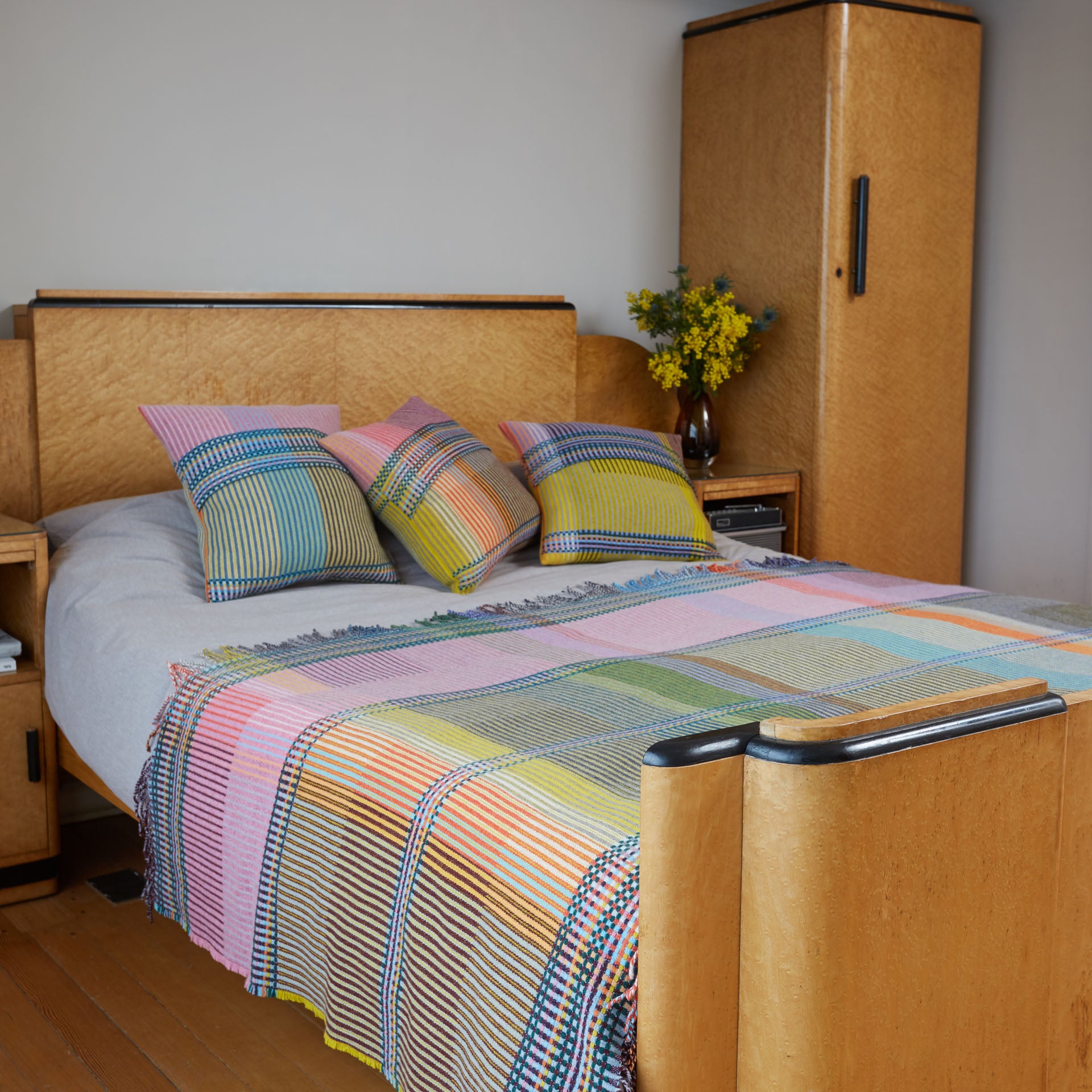 Wallace Sewell is a proudly UK-based studio established by Harriet Wallace-Jones and Emma Sewell that is renowned for their innovative use of colour, structure and yarns to create a distinctive range of quality throws and blankets. Their signature lines feature 3D double-sided waffle blankets, striking pinstriped lambswool throws and lighter weight basket weave designs. Their unique process combines innovation with traditional techniques that all starts on handlooms in their London and Dorset studios. Production takes place in a family-run mill, fusing tradition with state of the art technology, for consistent production quality textiles across various styles. The finished textile is washed and pressed to give a luxurious handle. Harriet and Emma continue to contribute to the wealth of expertise and production excellence of the British Textile Industry.
