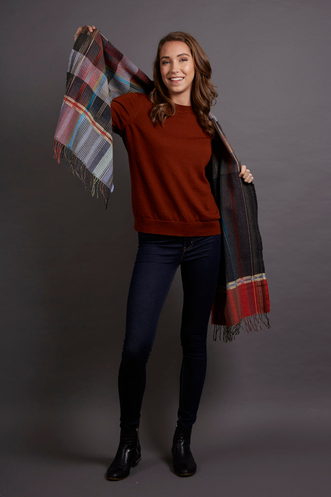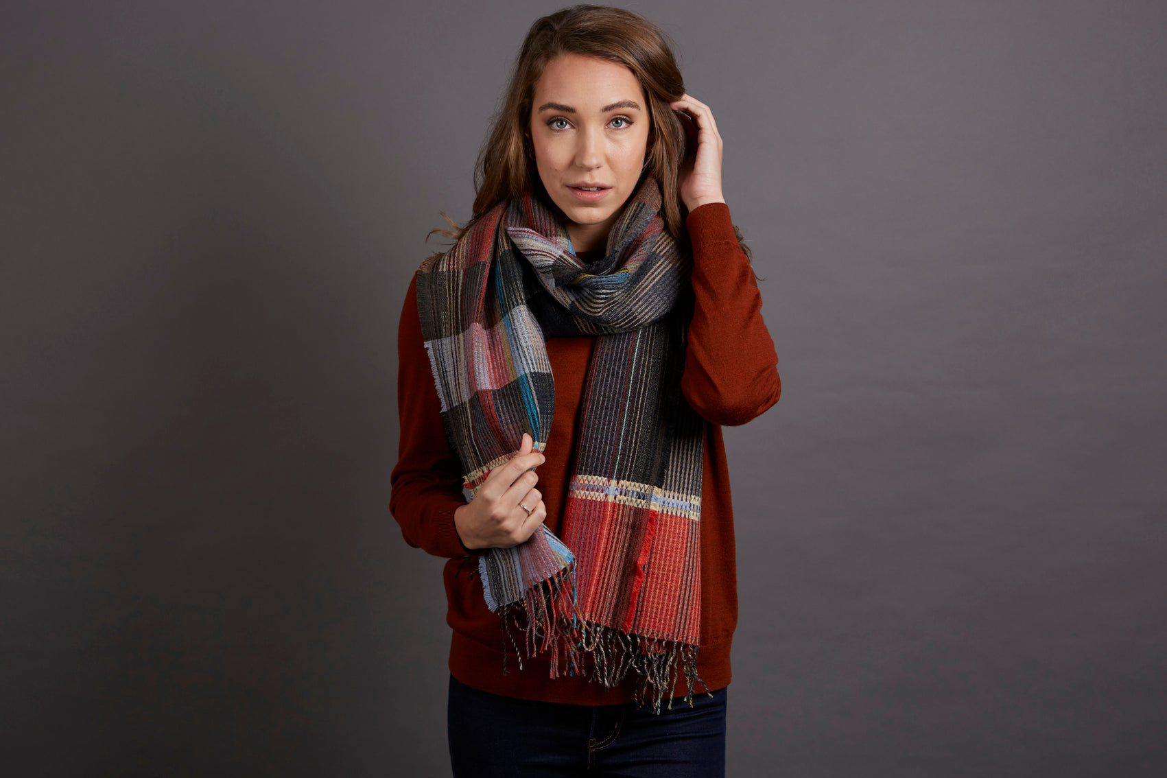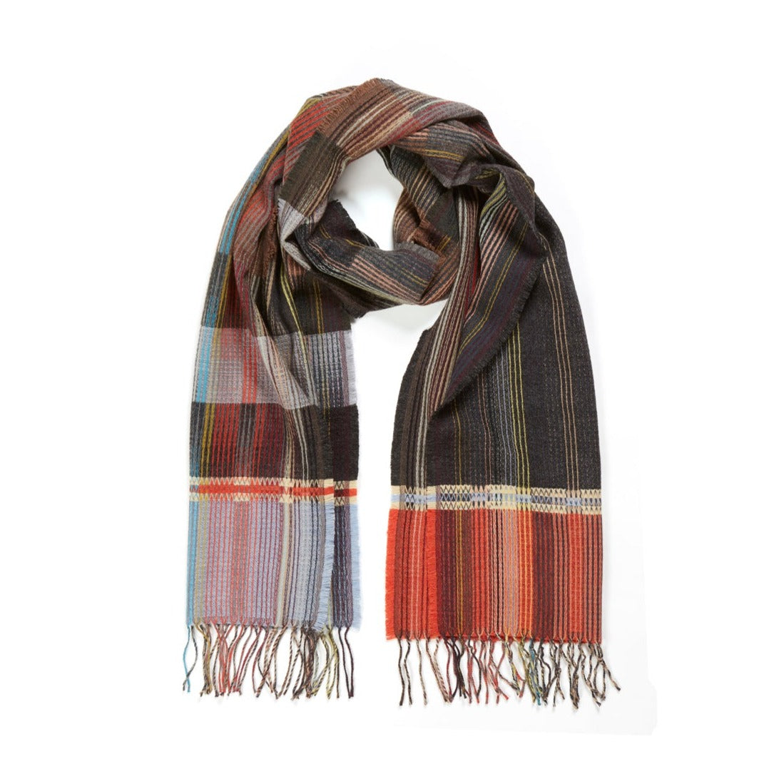 A wide width scarf, woven with super soft lambs wool; it can be wrapped twice round the neck, perfect for keeping warm and cosy. The design incorporates Wallace Sewell's signature pinstripe weave, using subtle alternating bands to form a beautiful interchanging linear pattern, finished at either end with a tassel fringe.