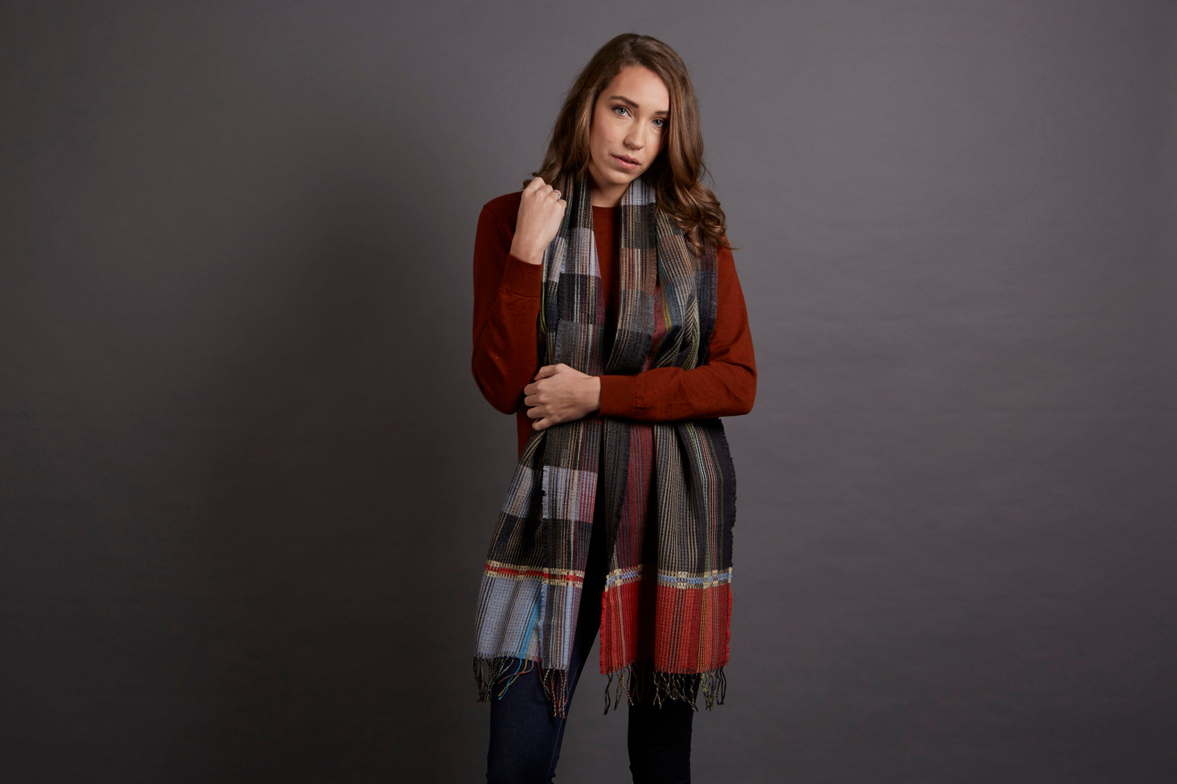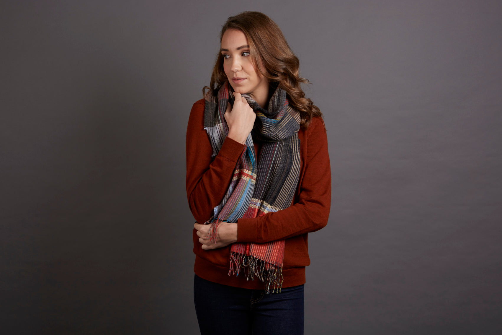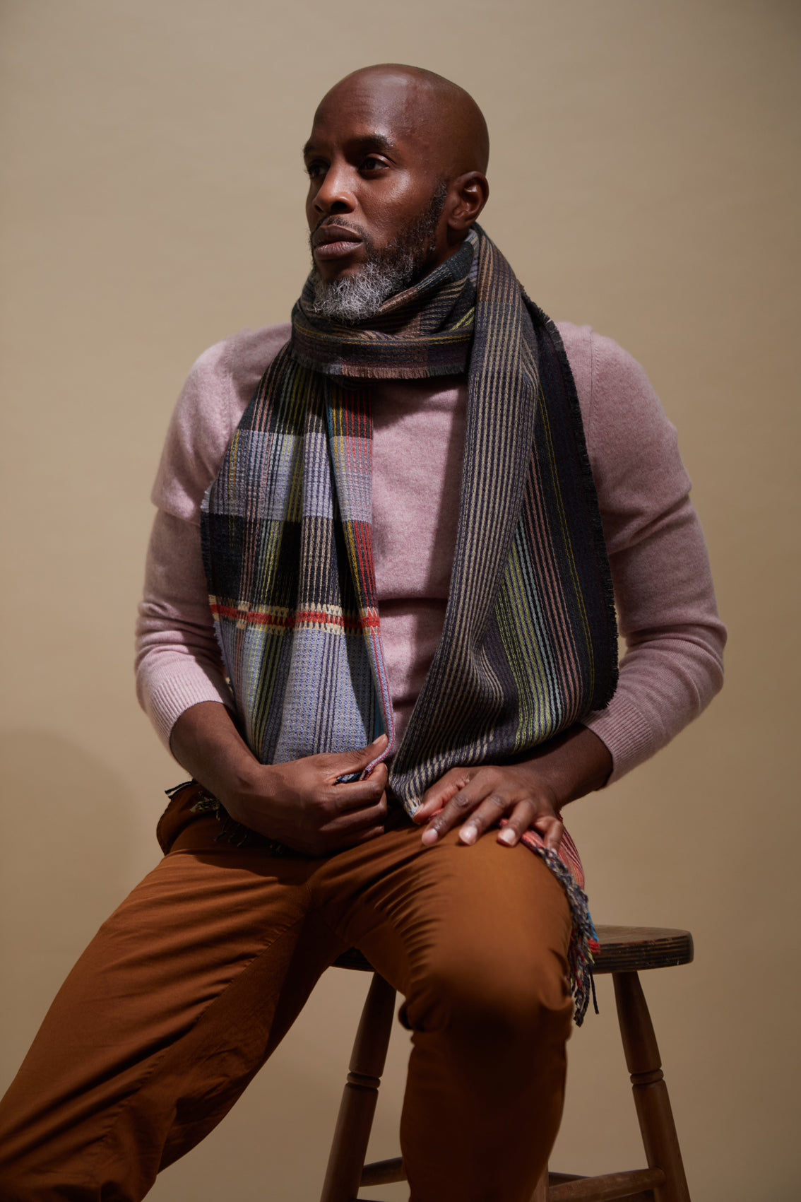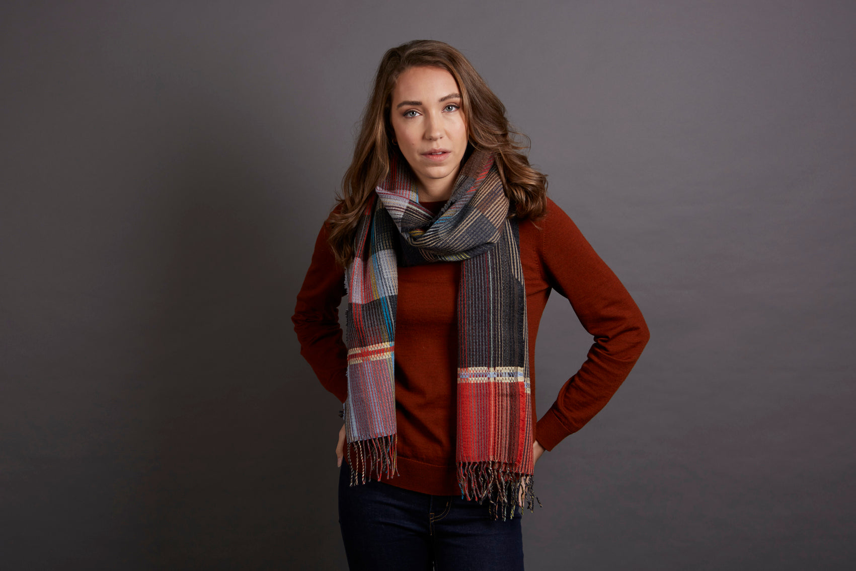A wide width scarf, woven with super soft lambs wool; it can be wrapped twice round the neck, perfect for keeping warm and cosy. The design incorporates Wallace Sewell's signature pinstripe weave, using subtle alternating bands to form a beautiful interchanging linear pattern, finished at either end with a tassel fringe.